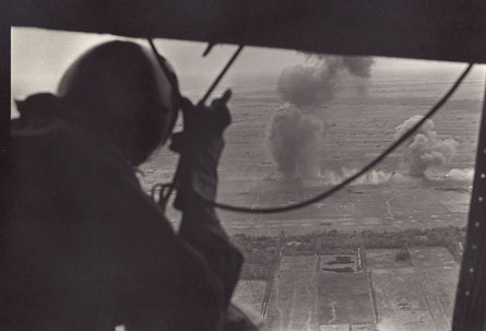 The white smoke marks a target. The target is a farm village. Vietcong have been shooting at Americans from the village. The village is about to disappear in an air strike by Phantom jets.