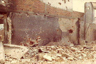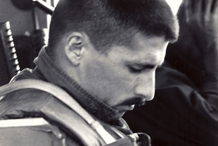 Something made me approach him. He was a handsome, powerfully built black kid. Gray smudges dappled his face where the heat had burned him. His eyebrows were singed. His hair was singed where the heat got under his helmet.